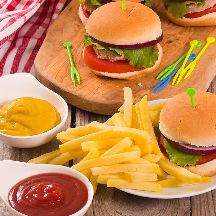 Panelenmiş mini tavuk parçaları, patates kızartması