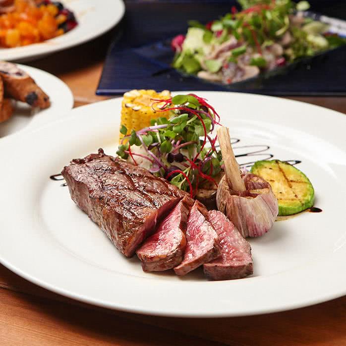 Sepete Ekle200 gr. ızgara et, demiglace sos, buharda sebze, mantar, elma dilim patates kızartması ve pilav ile